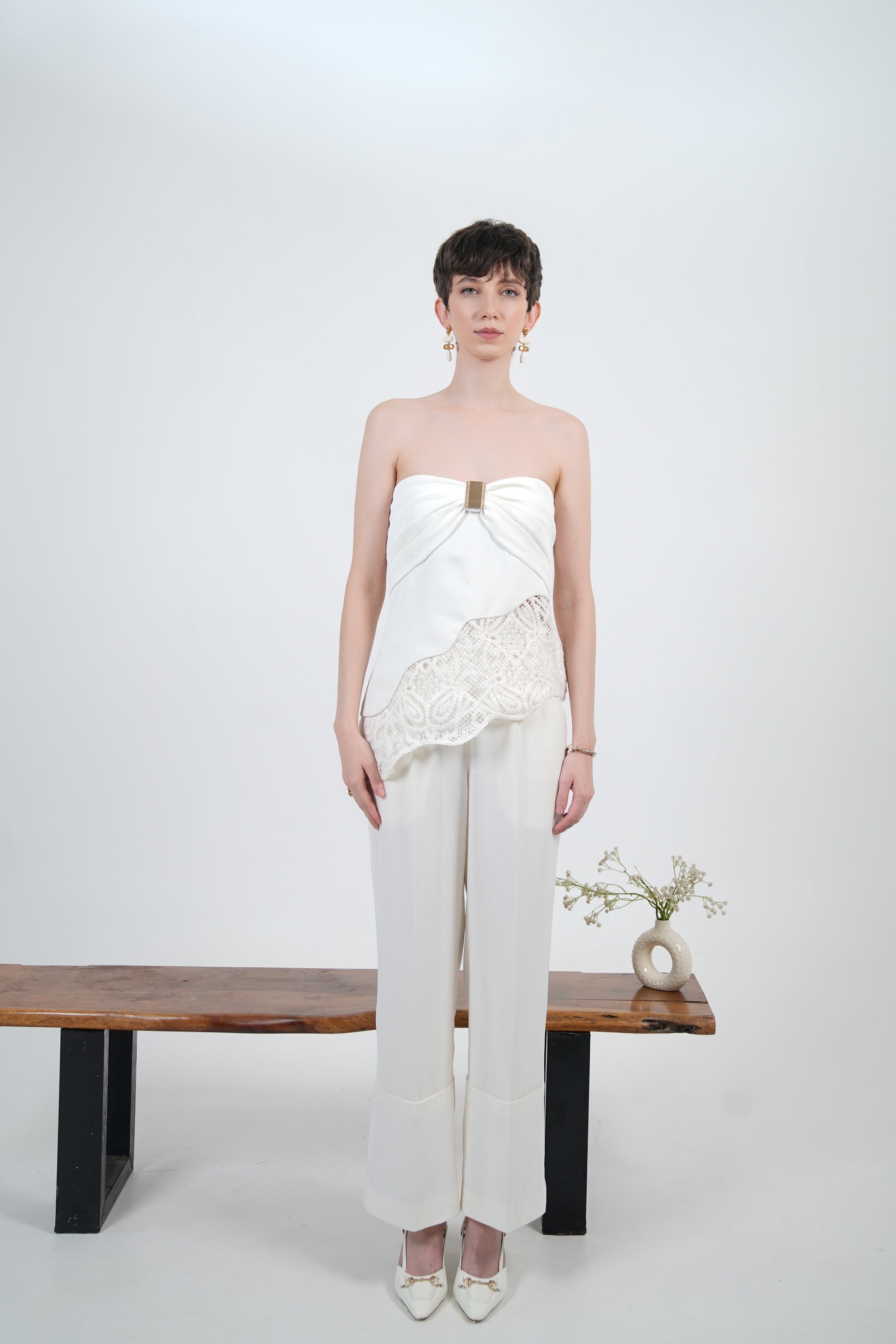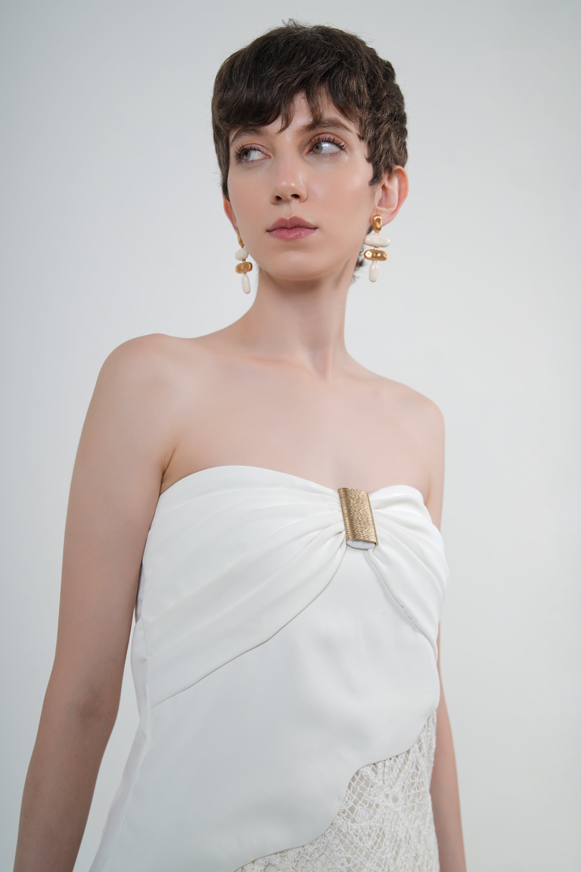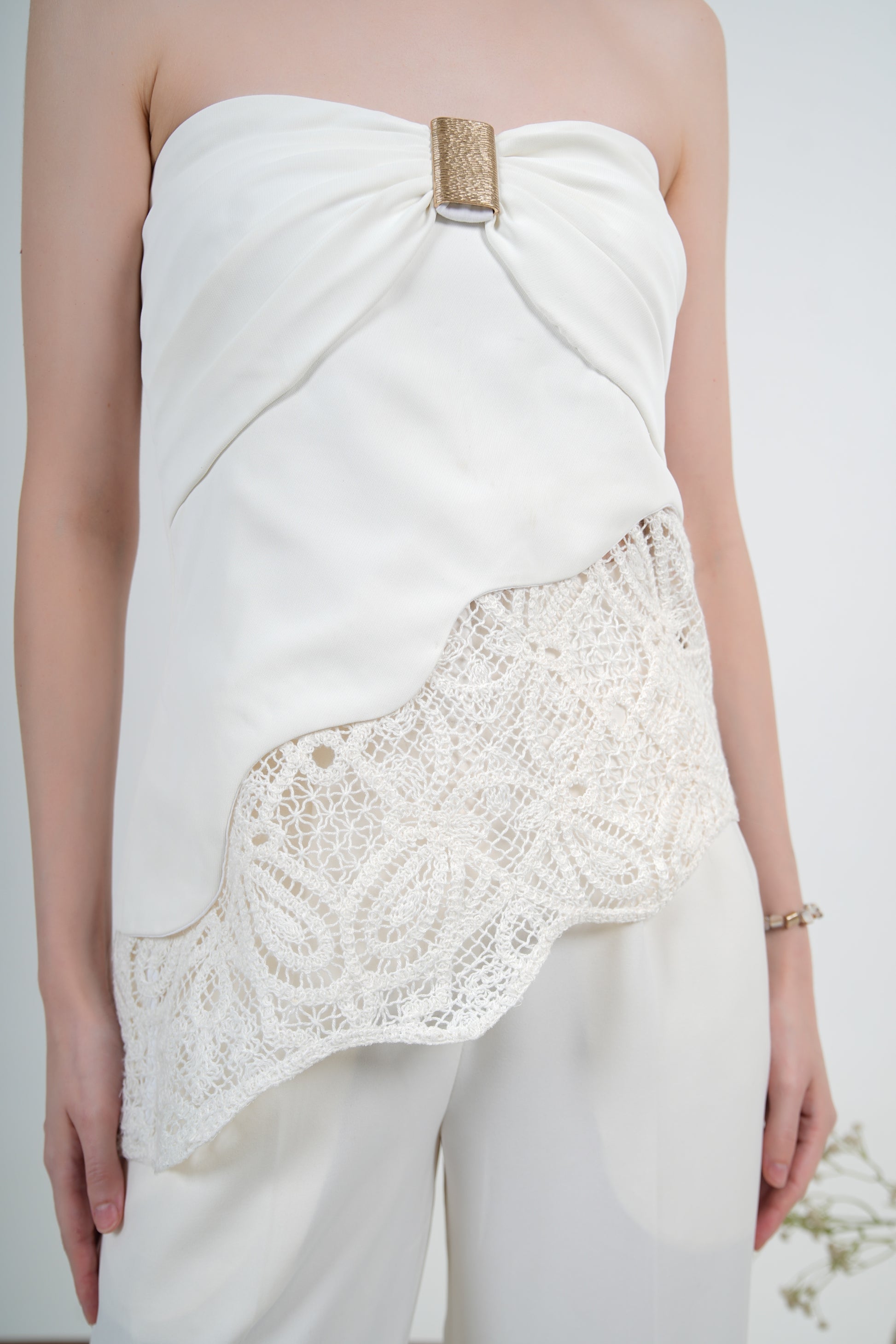 -DETAILS: METAL BROOCH WITH DRAPE & CROCHET DETAIL