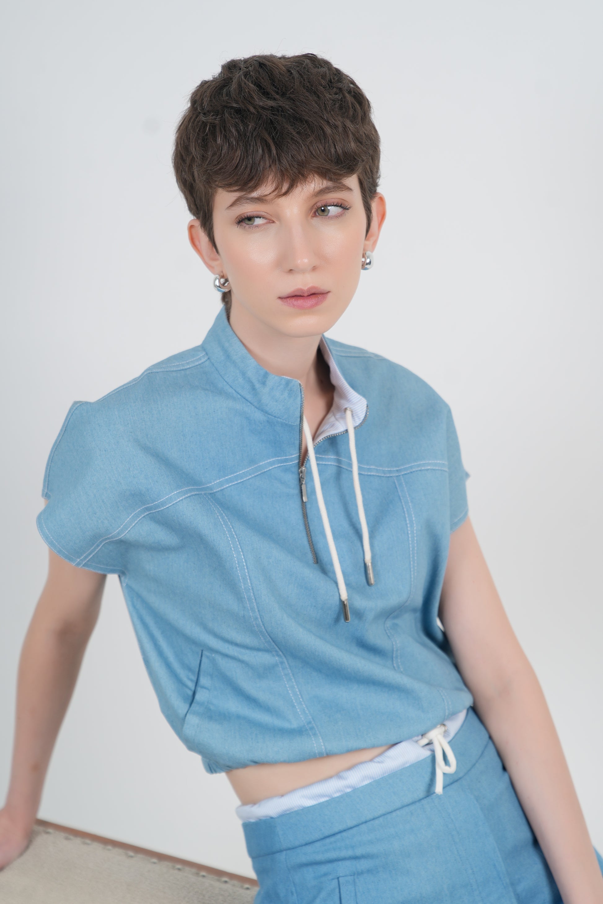 -DETAILS: HALF ZIP OPENING WITH STRIPE COLLAR DETAIL