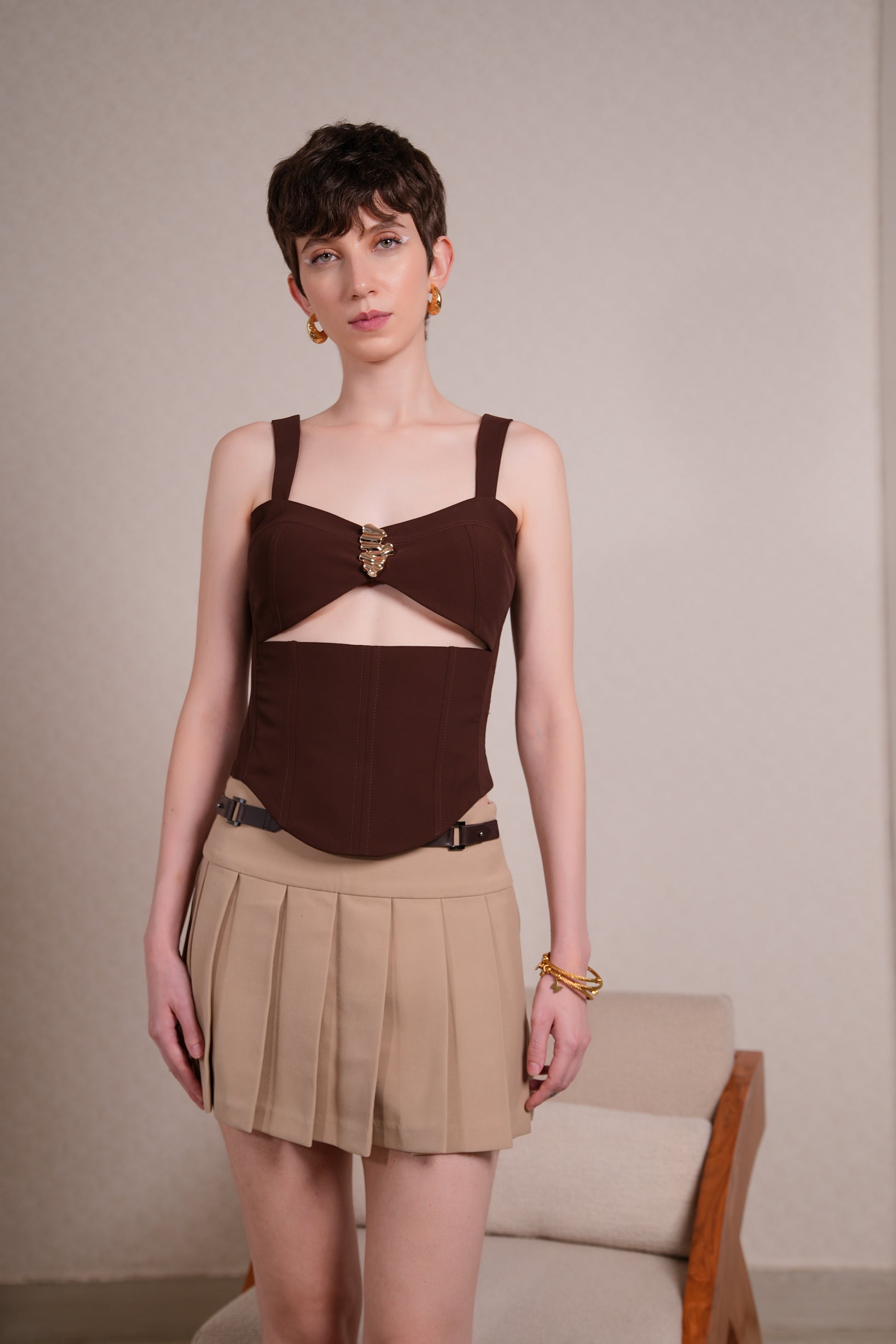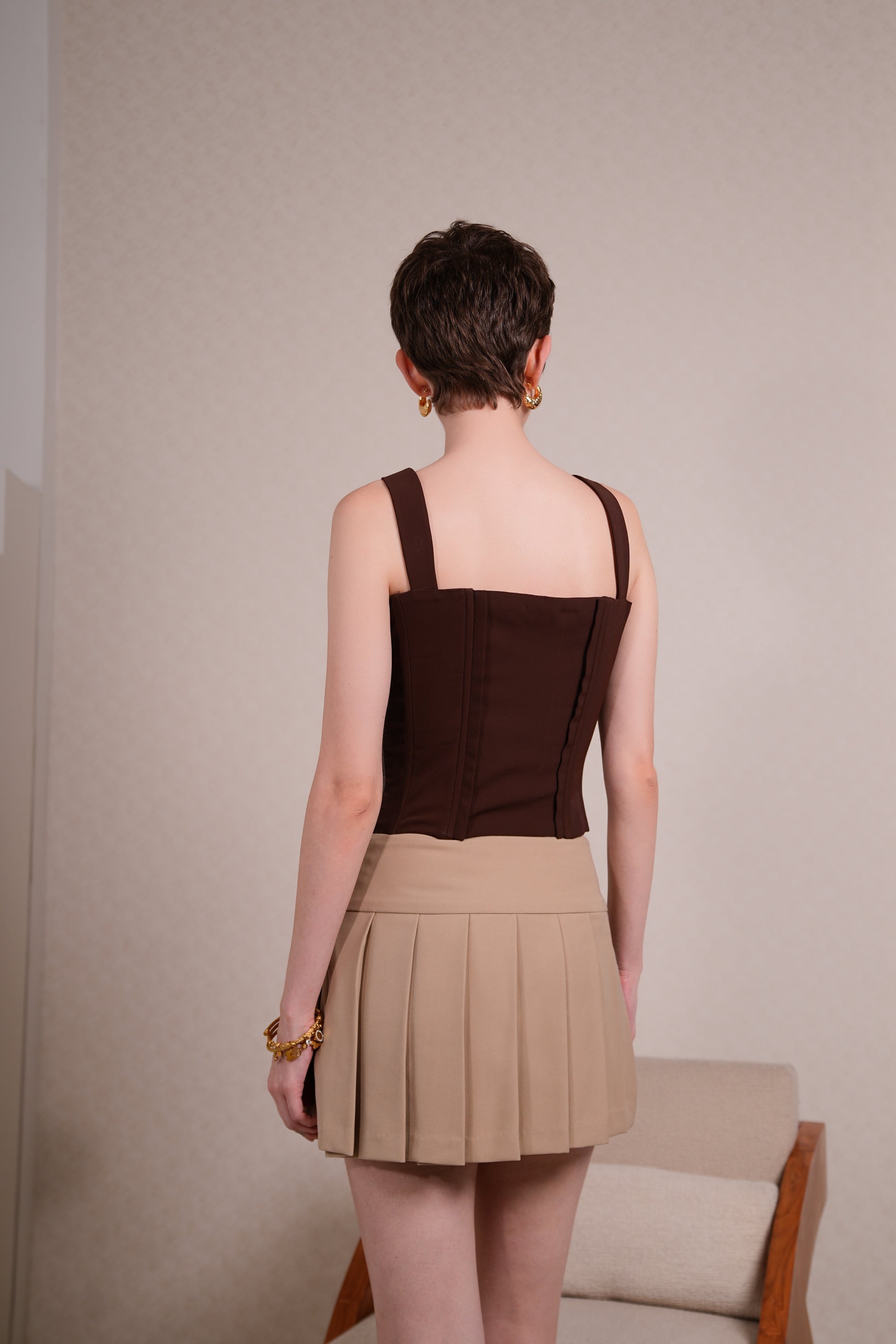 SAND PLEATED SKIRT